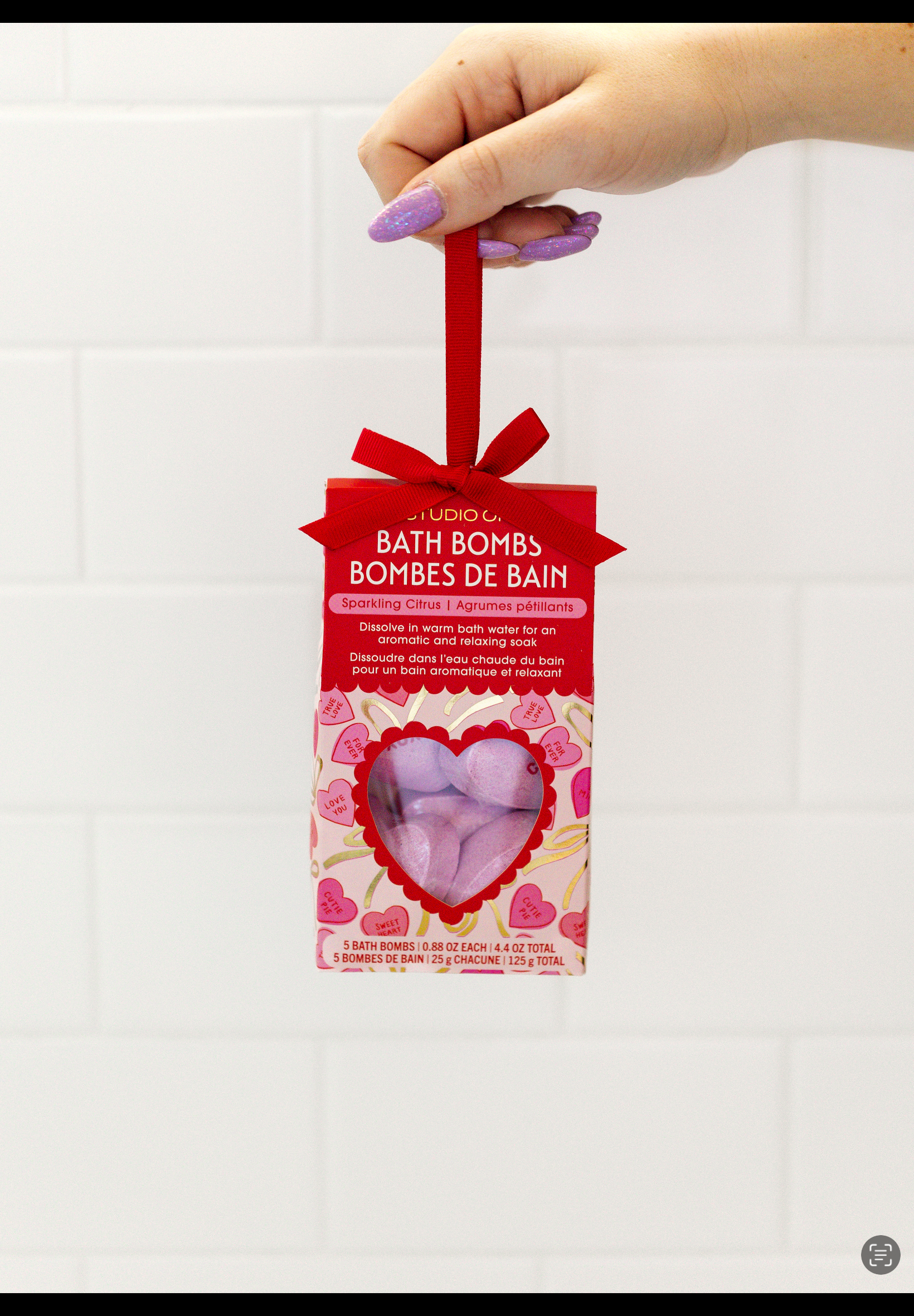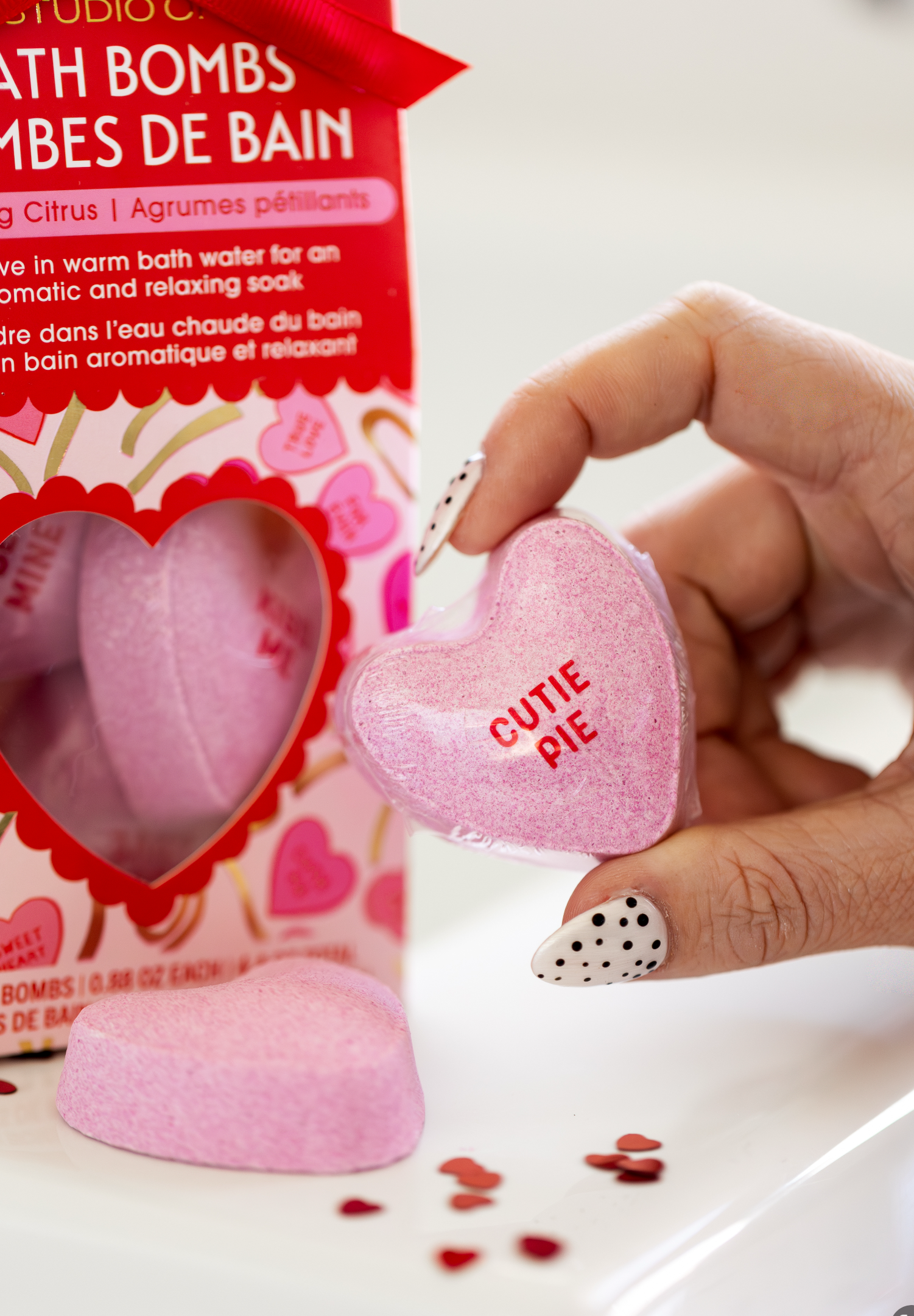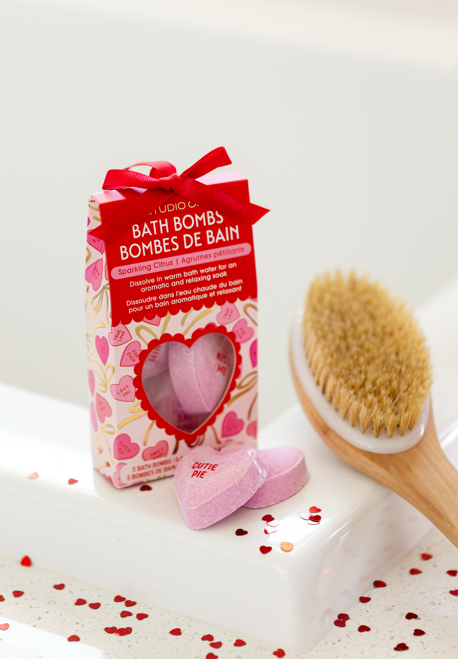 Fall head over heels for these heart-shaped bath bombs, inspired by classic candy hearts. The set includes five fizzy, scented delights — each wrapped in a cute Valentine’s message and tucked inside a beautifully designed box with a grosgrain bow. Drop one in a warm bath and let the soothing aromas melt your stress away. Whether it’s for your Valentine, your Galentine, or a much-needed me-time moment, these little hearts deliver big relaxation.