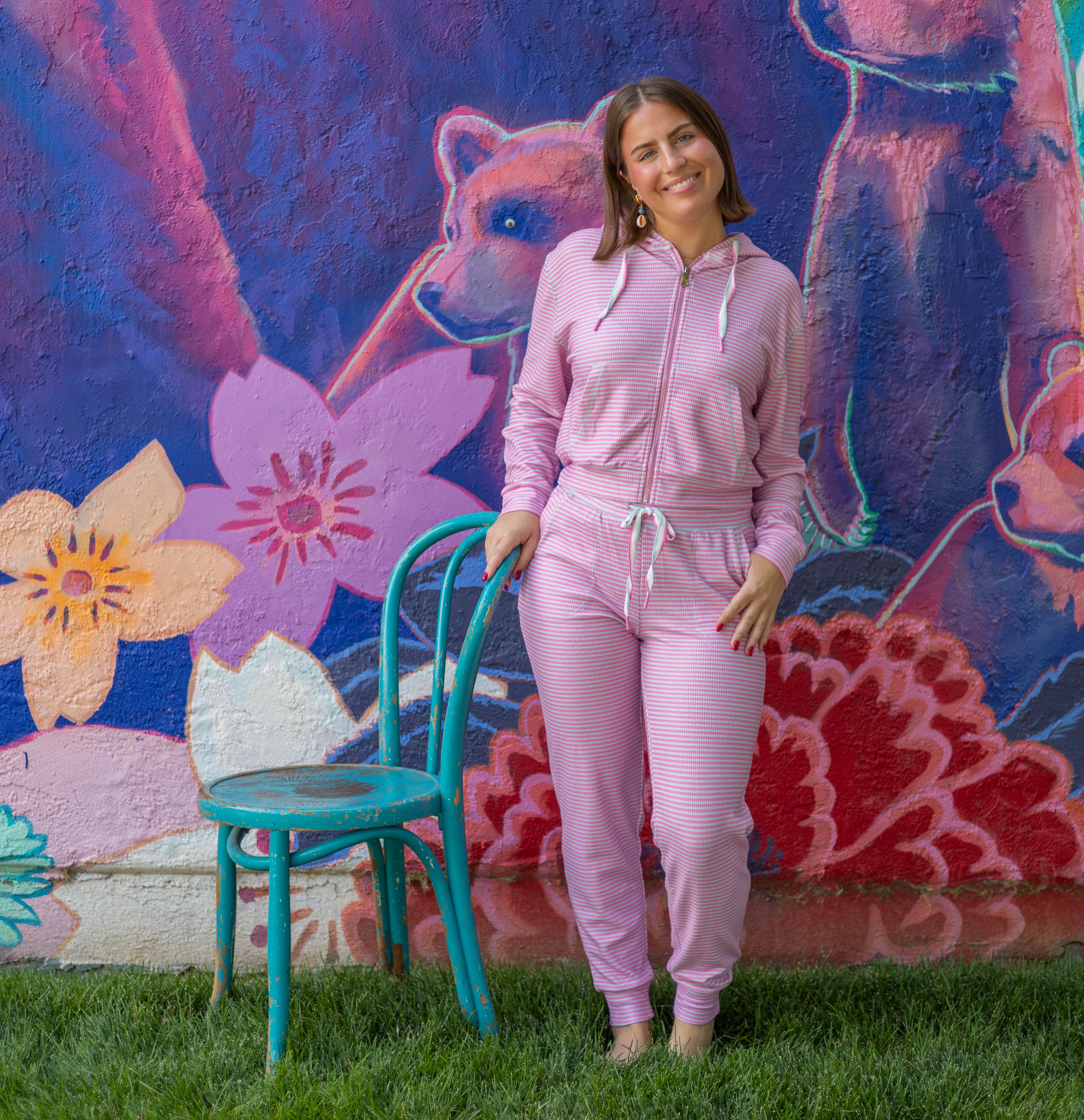 Made from a lightweight thermal-inspired knit, the Pink Striped Cozy Zip Hoodie offers breathable comfort that transitions seamlessly between seasons. The full front zipper makes it easy to throw on and layer, while the adjustable drawstring hood brings that extra touch of warmth when you need it. Ribbed cuffs and a comfortable waistband keep the fit secure yet flexible, ensuring you feel just as good as you look.