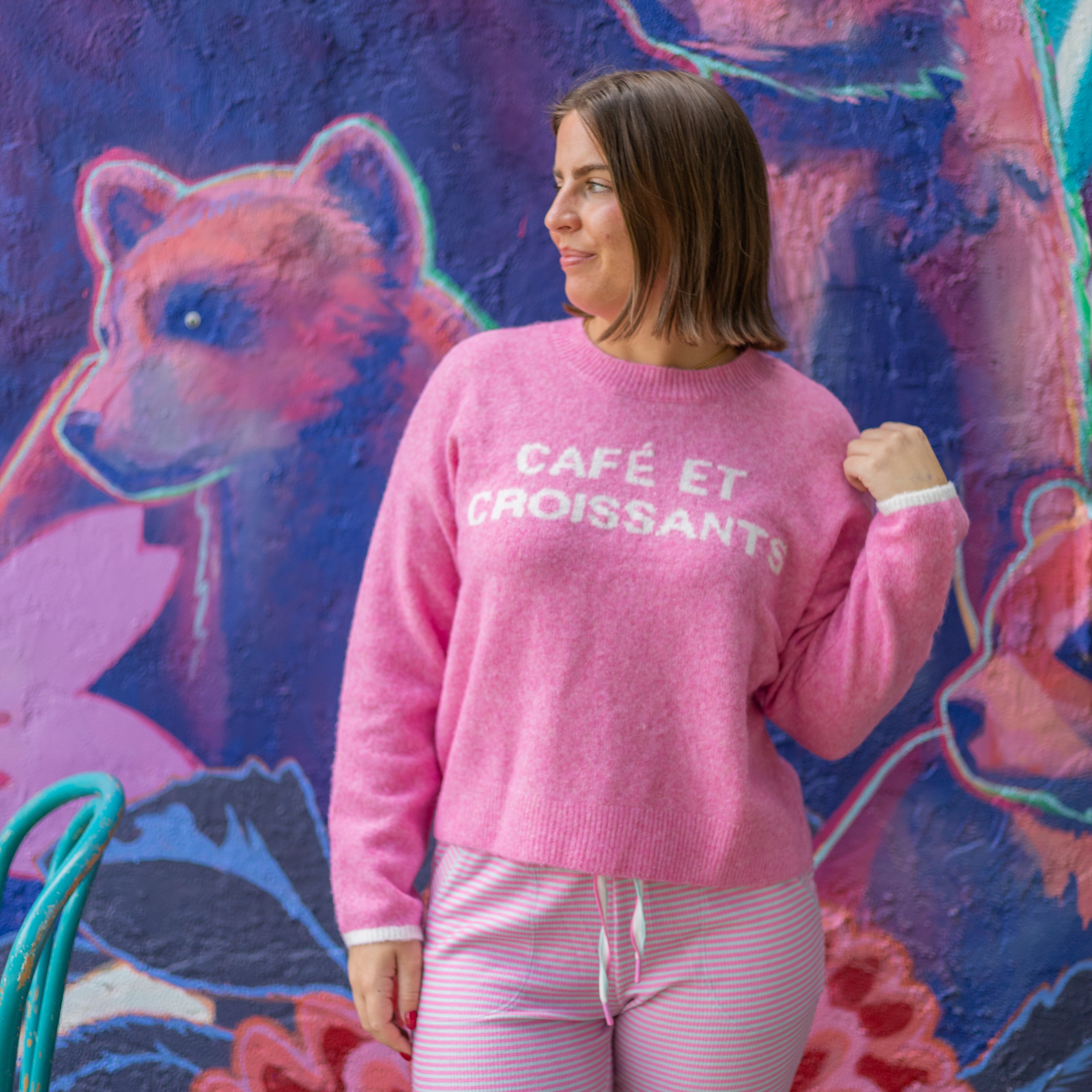 Bring a touch of Parisian charm to your everyday wardrobe with the Café Et Croissants and Ma Cherie Sweaters—a playful nod to dreamy mornings spent savoring coffee and pastries. Designed in a vibrant, eye-catching pink, this sweater instantly adds cheer and warmth to your outfit while celebrating the simple pleasures of life.