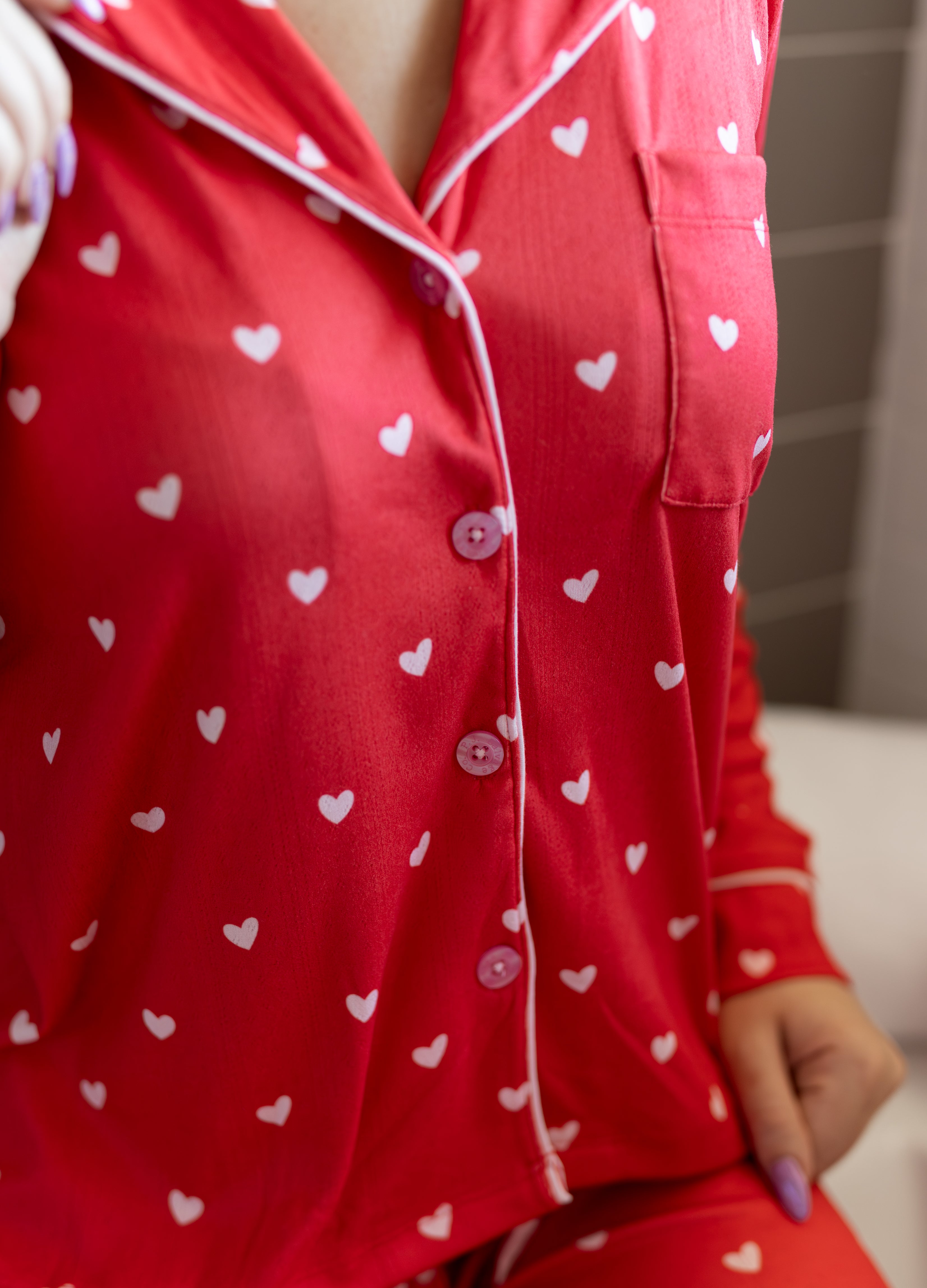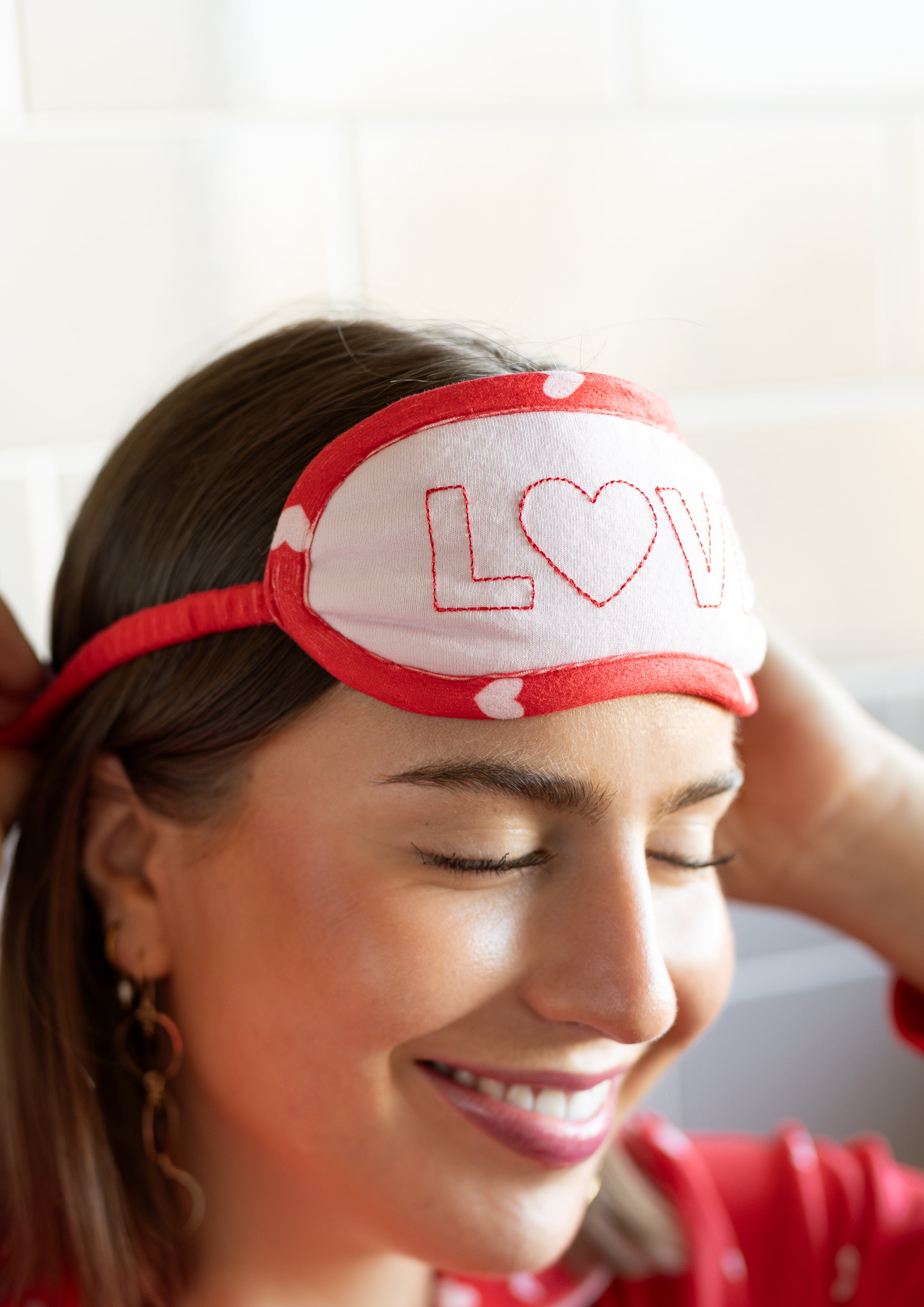 Wear your heart on your sleeve (literally) — and everywhere else. This three-piece pajama set features a relaxed and cozy button-down top and matching drawstring pants covered in tiny white hearts. The set also includes a sleep mask embroidered in "love." It’s a Valentine classic you can still reach for all year long.