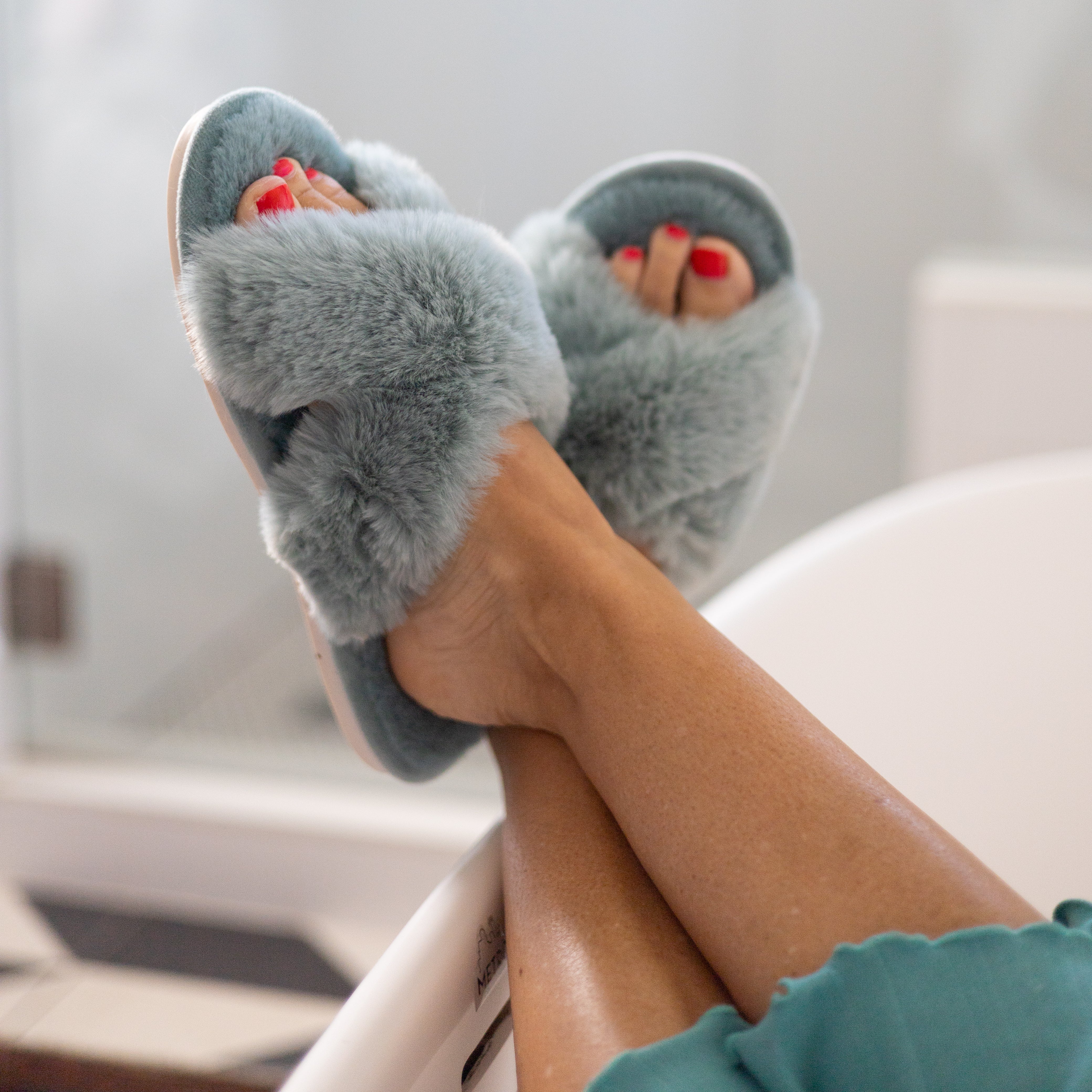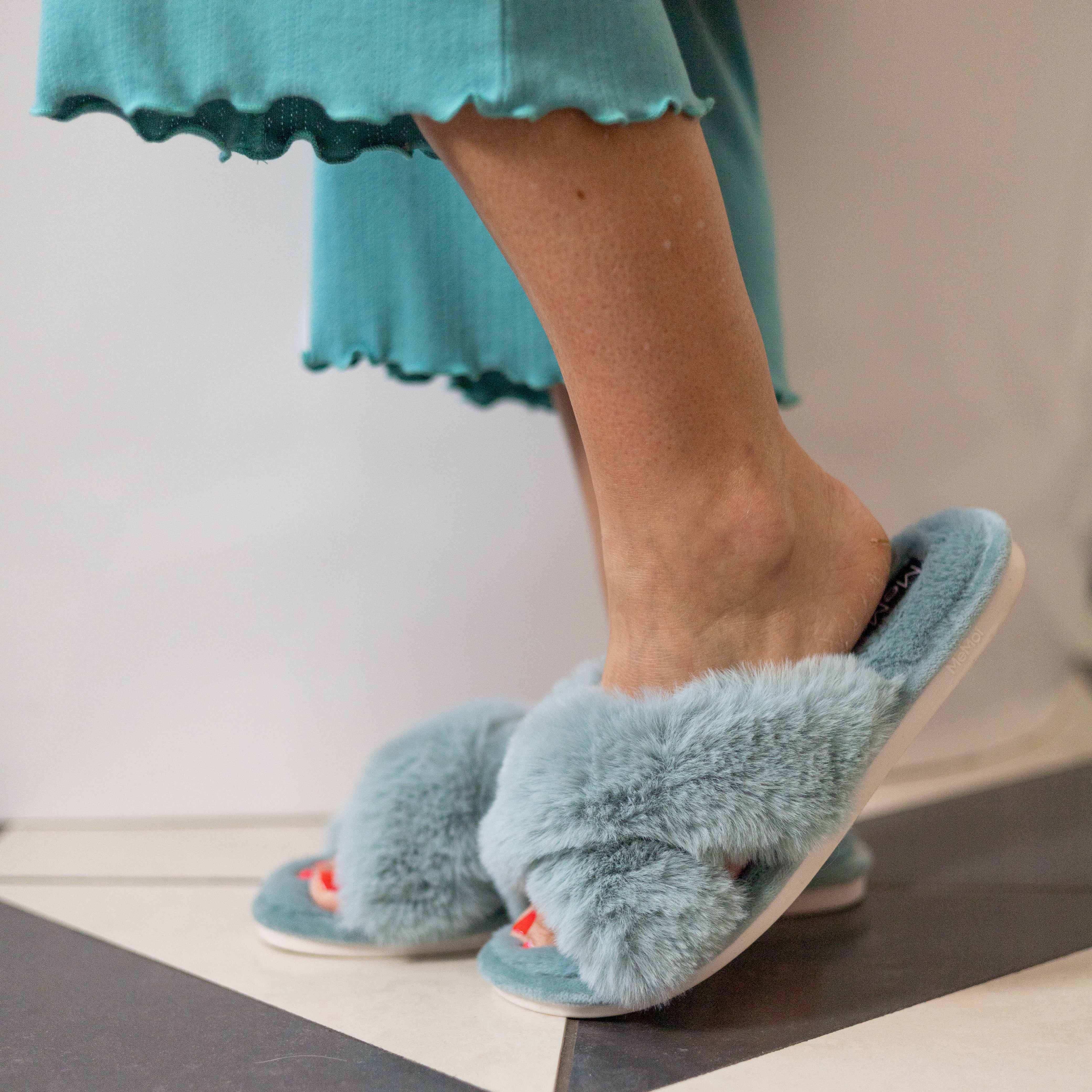 Step into a world of elegance and comfort with the Blue Fur Slipper, designed to elevate your loungewear with a touch of old Hollywood charm. This stunning slipper features a plush faux fur exterior in a striking blue hue, providing a luxuriously soft feel while keeping your feet warm and cozy. The criss-cross design offers breathability and freedom, while ensuring a secure, comfortable fit for all-day wear.
