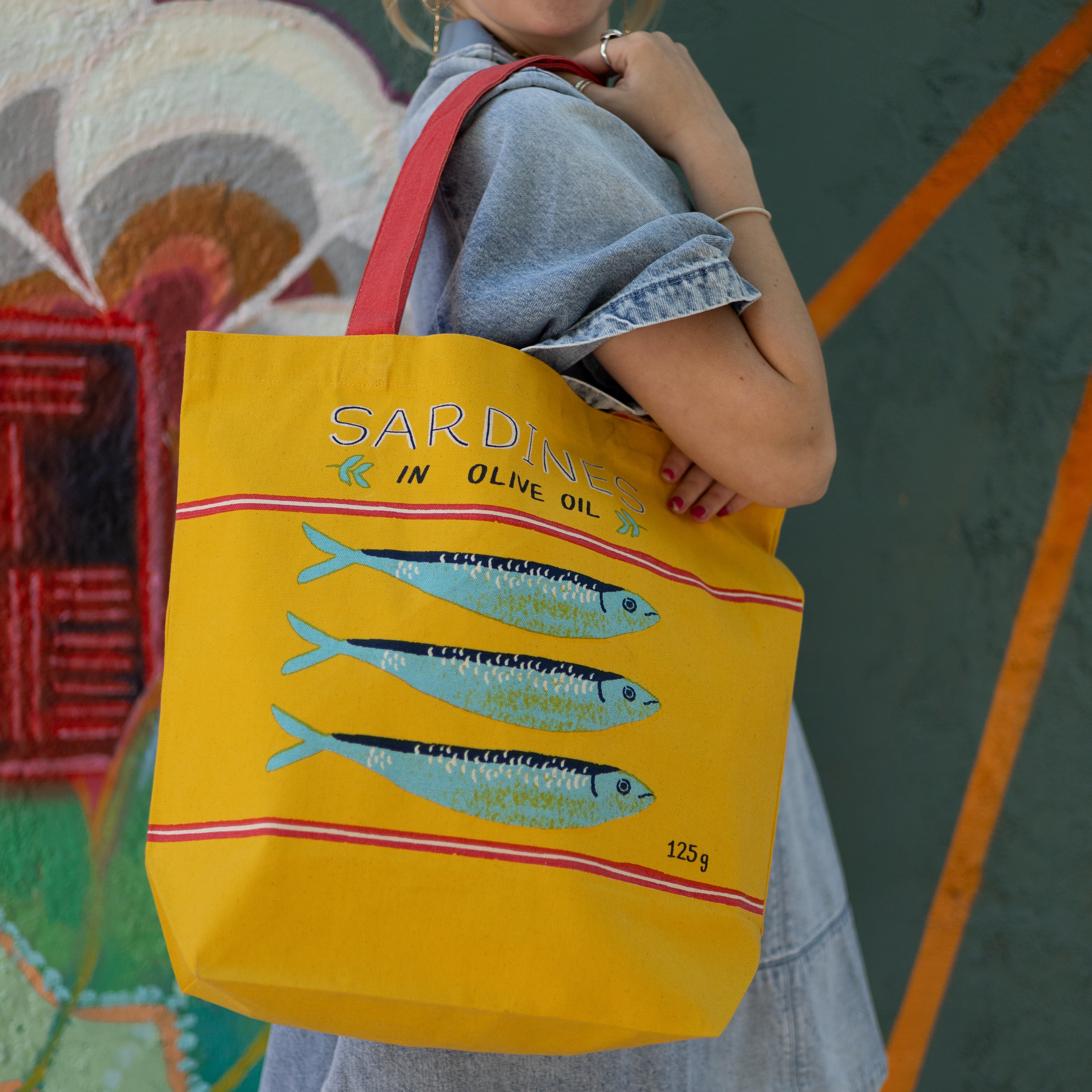 Make waves wherever you go with the Del Mar Tote Bag, a vibrant and whimsical accessory inspired by the charm of vintage tinned fish labels and seaside adventures. Bursting with color and storytelling style, this roomy cotton tote brings nautical nostalgia to everyday errands, beach trips, and market strolls.
