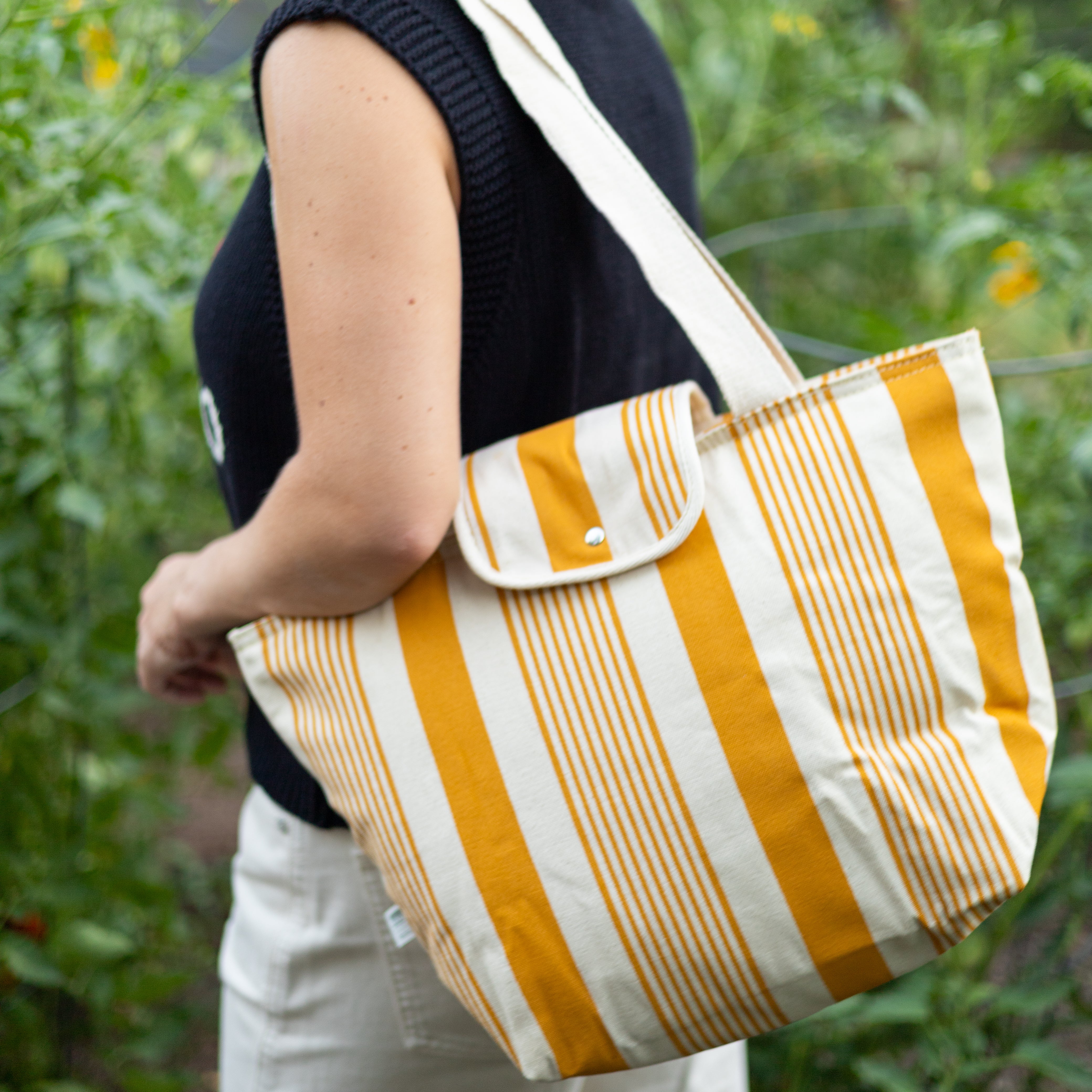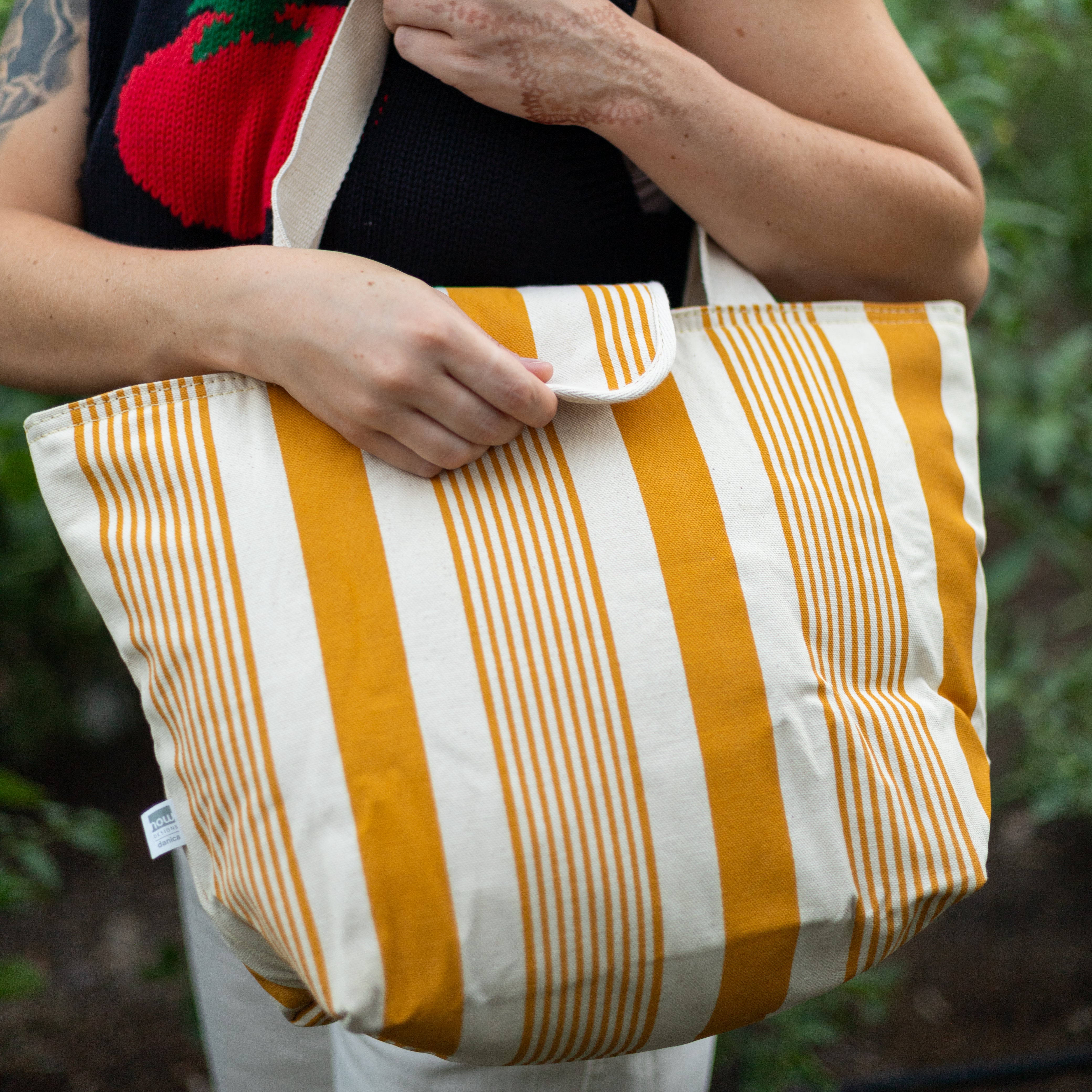 Elevate your everyday carry with the Ochre Stripe Insulated Tote—where form, function, and sustainability meet.